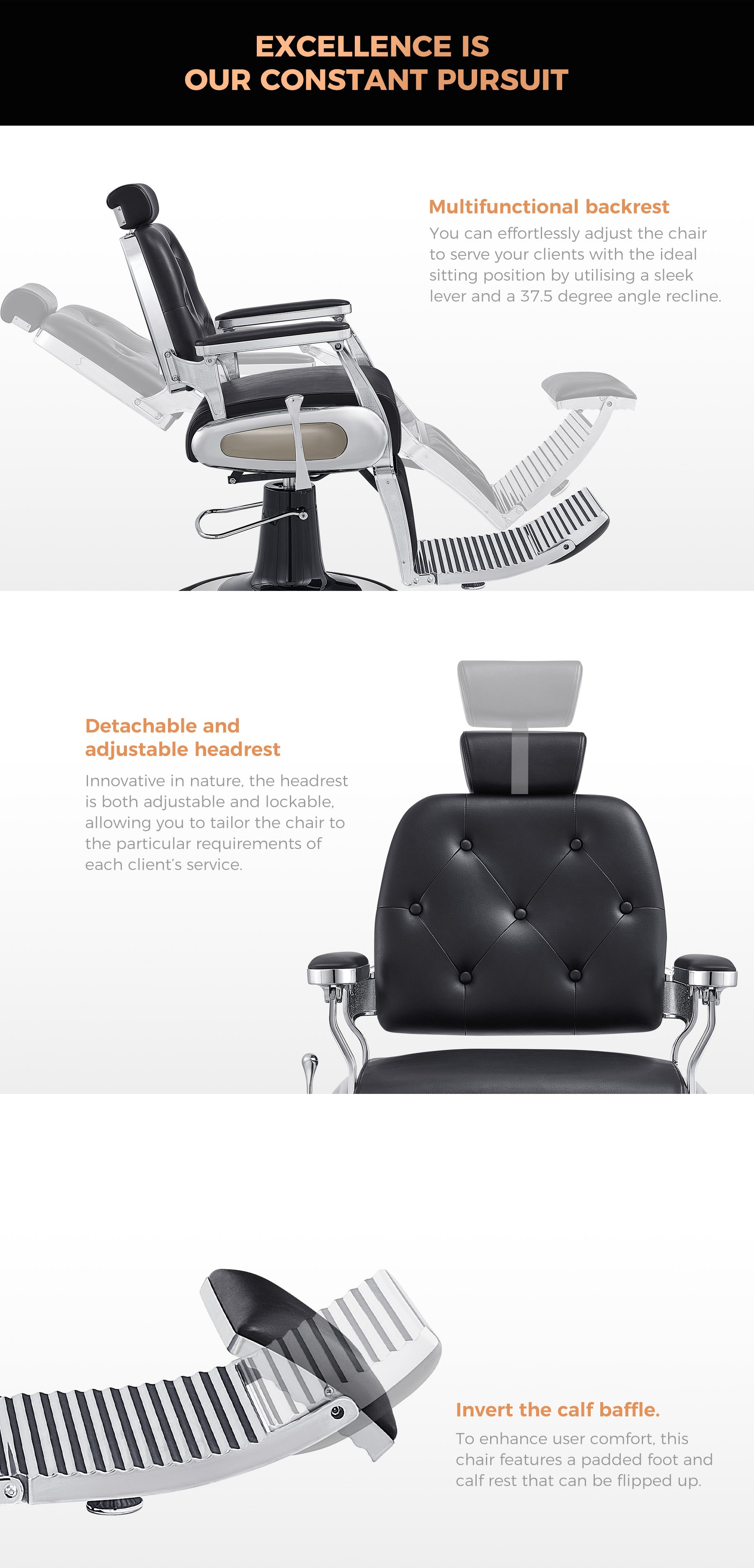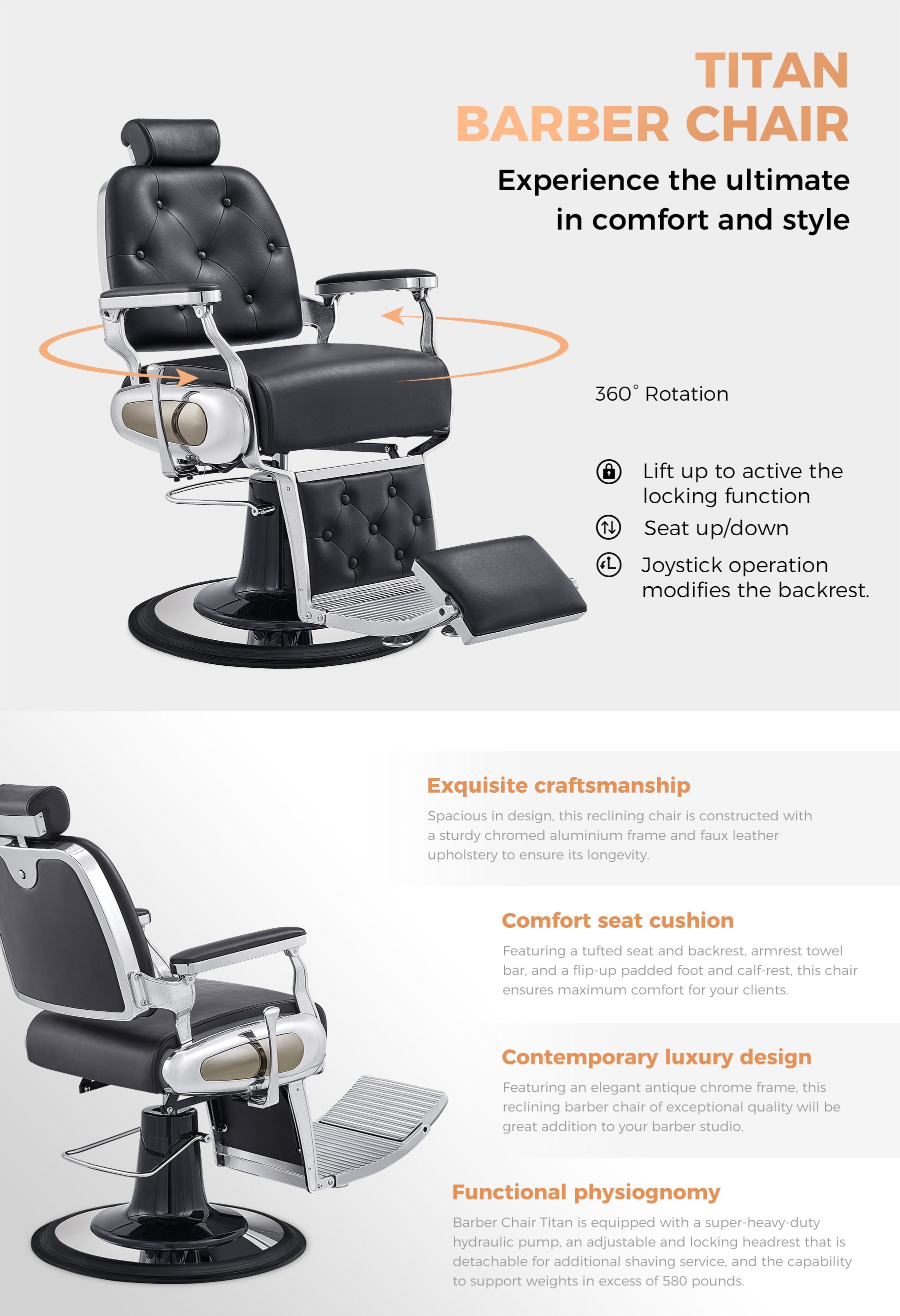 Opgrader din salon eller barbershop med Barber Chairs Titan x3. Med deres luksuriøse design, justerbare funktioner og overlegne komfort vil disse stole forbedre den samlede oplevelse for både barberer og kunder. Invester i kvalitet og gør et statement med Barber Chairs Titan x3.