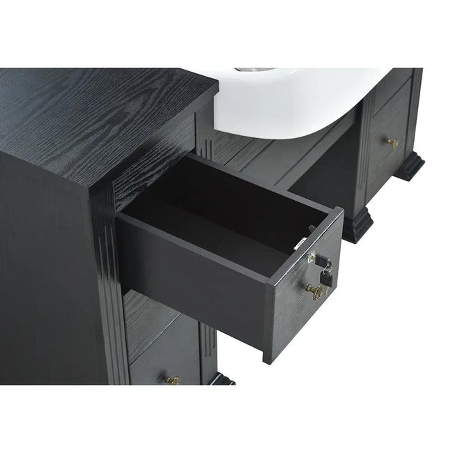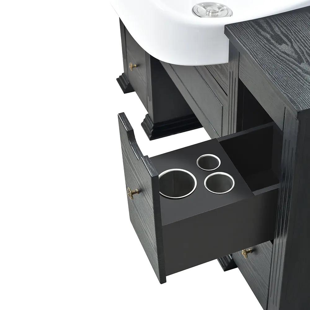 Lad os starte med det væsentlige - Insignia barberstationen er udstyret med en poleret keramisk shampooskål. Denne kvalitetsskål tilføjer ikke kun et strejf af elegance til din salon, men giver også et komfortabelt og praktisk sted til hårvask. Sig farvel til akavede bøjerier over vaske eller ubehagelige håndvaske.