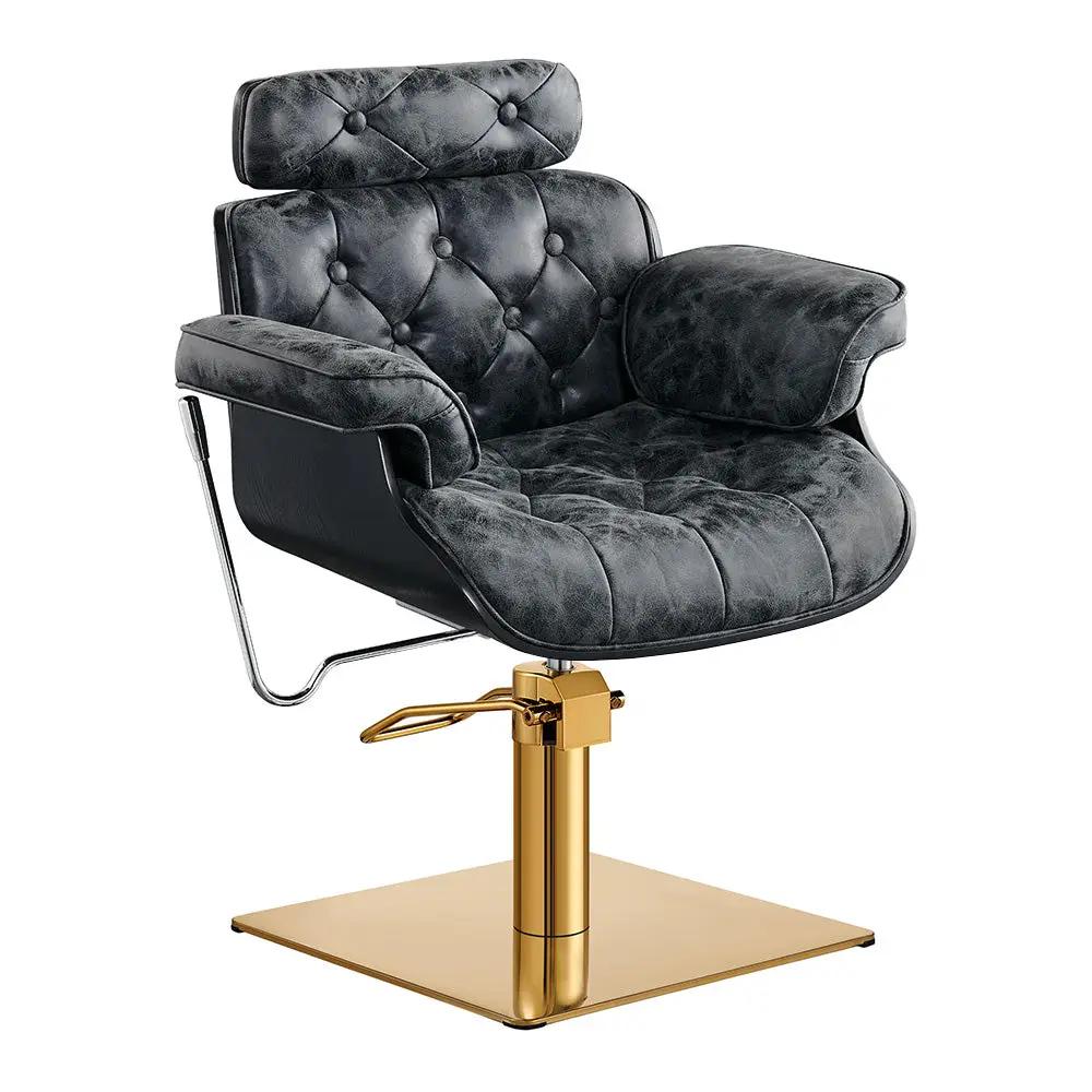 Med sit vintage-inspirerede design tilføjer vores Beauty Salon Hairdressing Recliner Styling Chair et strejf af elegance og sofistikering til din salons indretning. Stolen fås i tre stilfulde farver - sort, hvid og brun - så du kan vælge den mulighed, der bedst passer til din salons æstetik. Derudover kan du vælge mellem tre basisstile - runde, firkantede eller femstjernede - for at matche dit rums overordnede design.