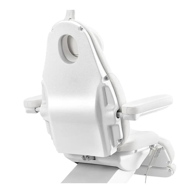 Nakkestøtten på Bellucci Electrical Facial Bed har et åndehul, der giver øget komfort og bekvemmelighed under procedurer, der kræver, at kunden ligger med ansigtet nedad. Denne funktion sikrer, at kunden kan trække vejret komfortabelt under behandlingen, hvilket forhindrer ubehag eller klaustrofobi.