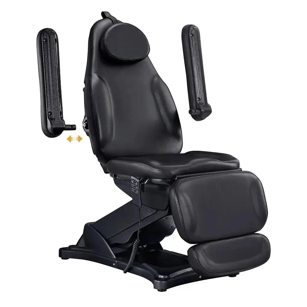 For ekstra bekvemmelighed er armlænene på Belluccis elektriske ansigtsbehandlingsseng vendbare og aftagelige. Dette giver nem adgang til kundens arme under behandlinger, uanset om du skal påføre hudplejeprodukter eller udføre undersøgelser. Den udtrækkelige og aftagelige fodstøtte giver også fleksibilitet, så du kan justere behandlingssengen til den perfekte position for din kundes komfort.