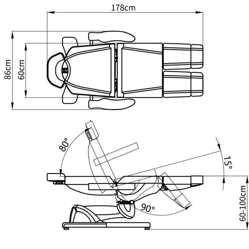 Experience the ultimate in comfort and versatility with our beauty bed Libra. This full-electrical treatment bed is equipped with 5 motors for precise adjustments, providing a quiet and seamless experience. With a weight capacity of 180kg, high-grade faux leather, and high-density foam, this beauty bed offers both comfort and durability. The dual headrest and removable arms make it suitable for a variety of procedures. Enjoy easy operation with the 8-button remote control. Fully assembled and backed by a 1-year warranty, this chair is ready to elevate your beauty and medical facilities.