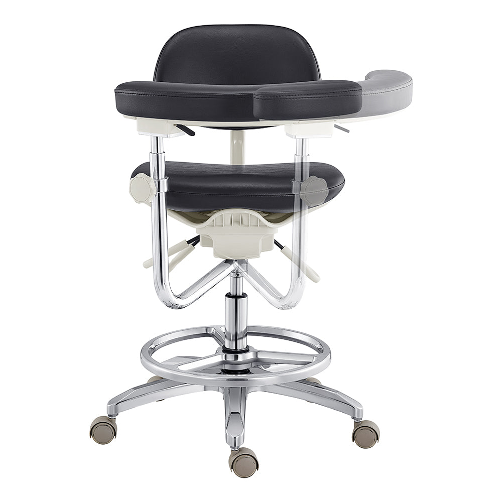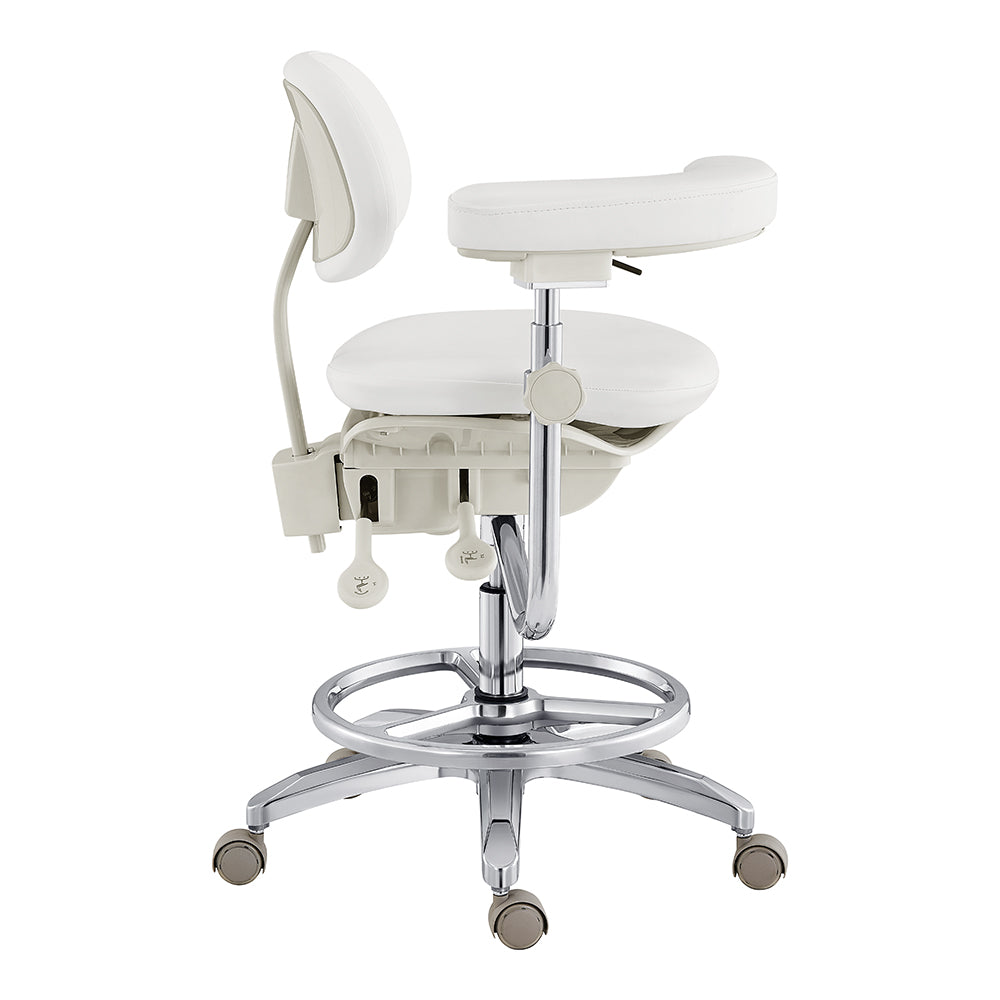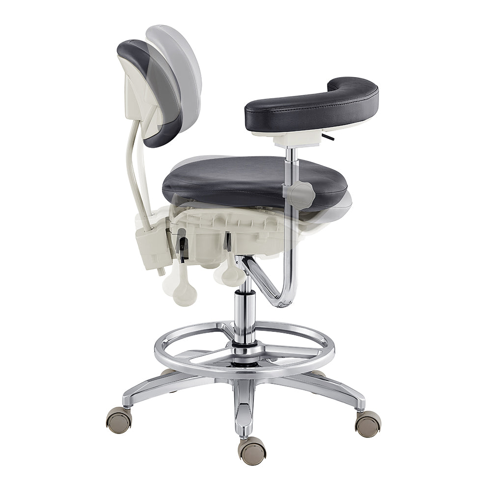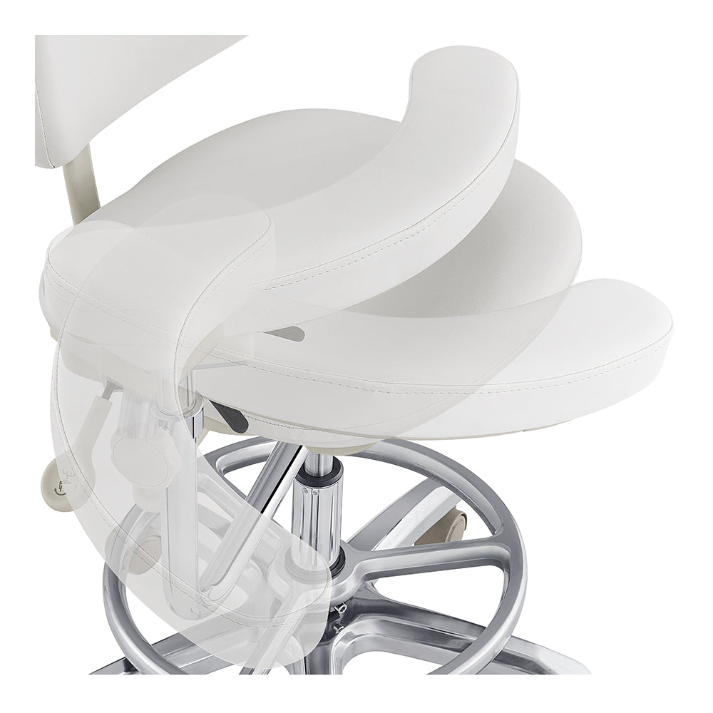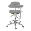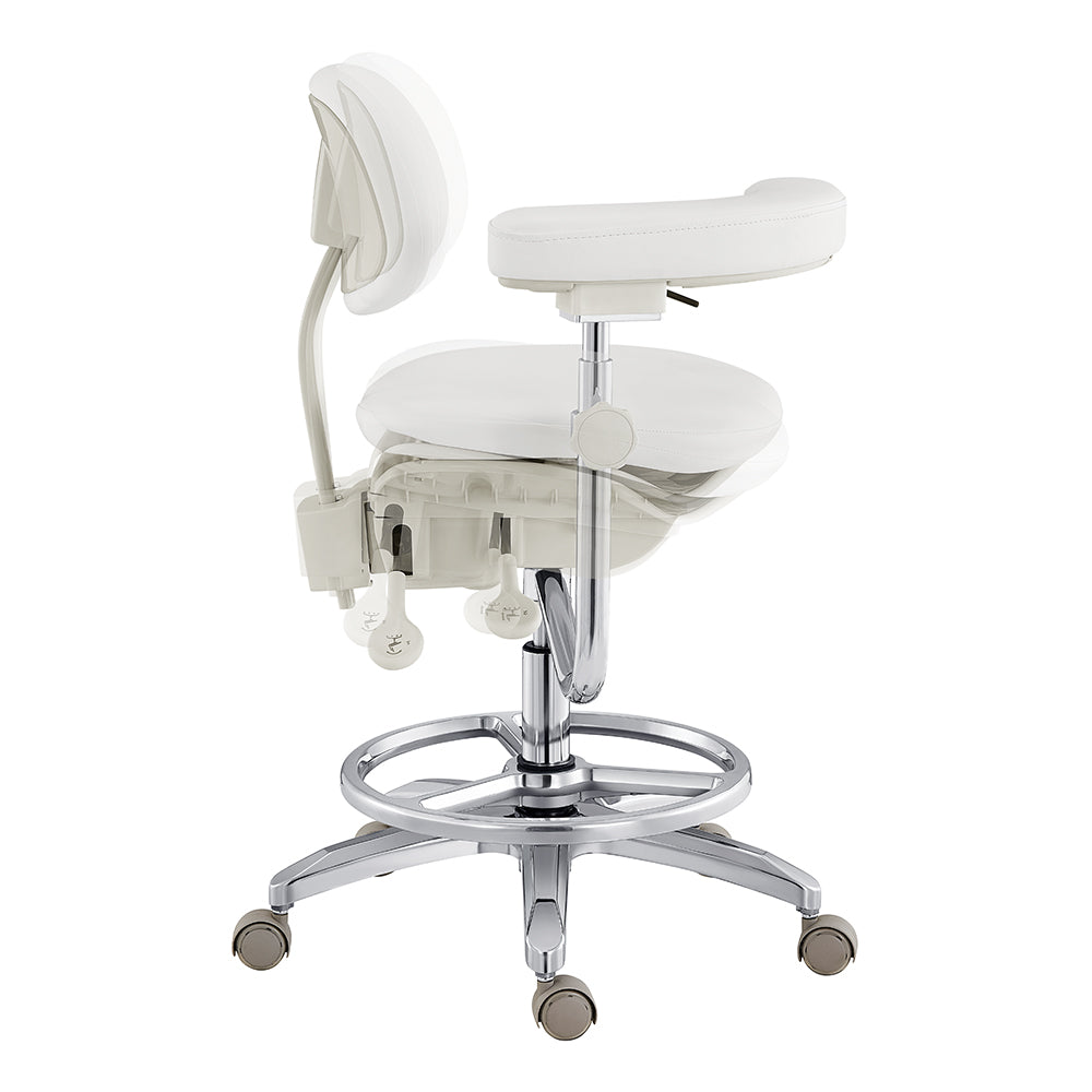 Den revolutionerende Willow-skønhedsskammel henter sine designelementer fra vores mest funktionelle skammelmodeller og inkorporerer betydelige forbedringer på alle områder. Denne moderne skammel har seks hjul fastgjort til en bred base for optimal stabilitet. Sædet har en bred vifte af fodbetjening, gasløft, højdejustering og trepunkts vægtstøtte. Pladsen under den højdensitets memory-skum giver ekstra komfort til længere siddestillinger og passer perfekt til enhver kropsform. Ud over at have højdejusteringsmuligheder er ryglænet også justerbart fremad. Skamlen suppleres af et højdejusterbart, roterende armlæn, der kan placeres i enten venstre eller højre side. Det giver lægen mulighed for at rotere på armlænet under behandlingen.