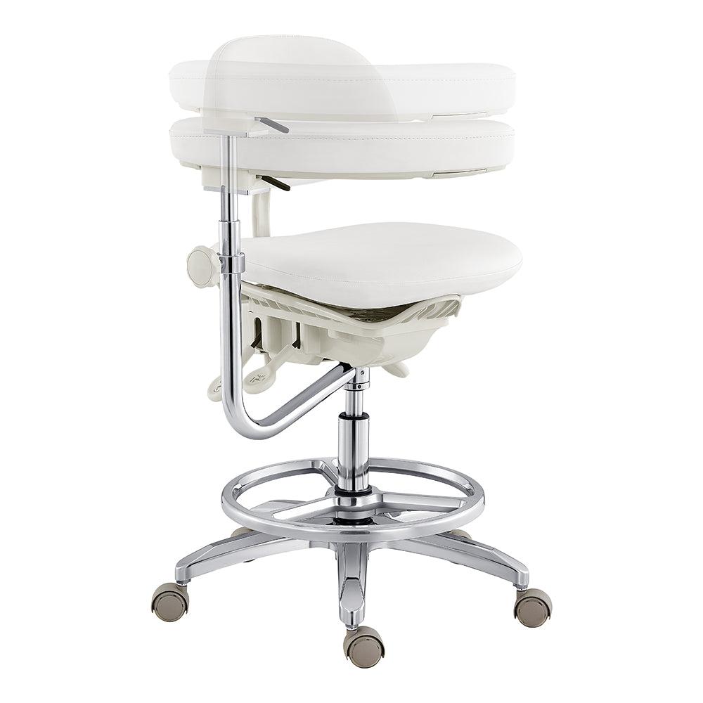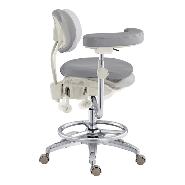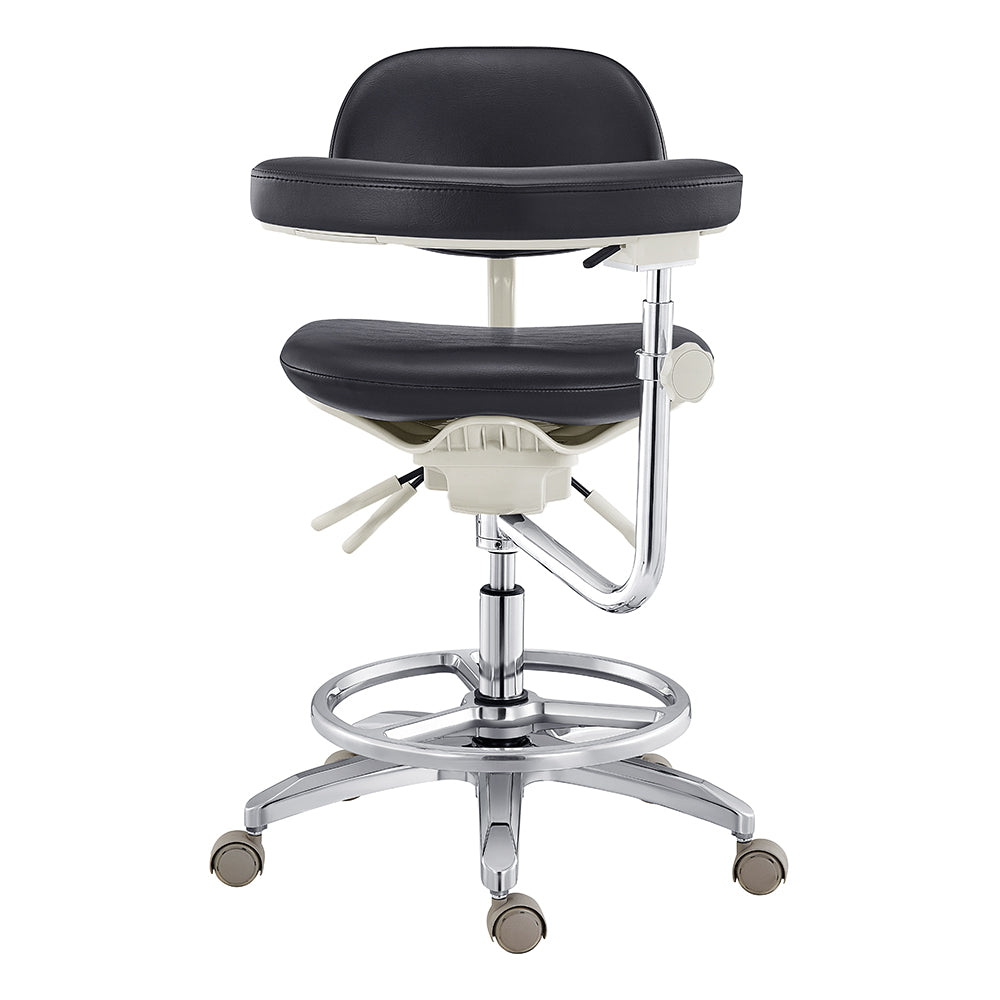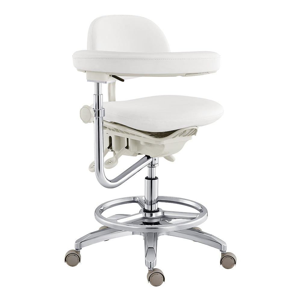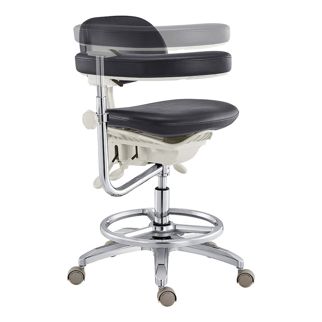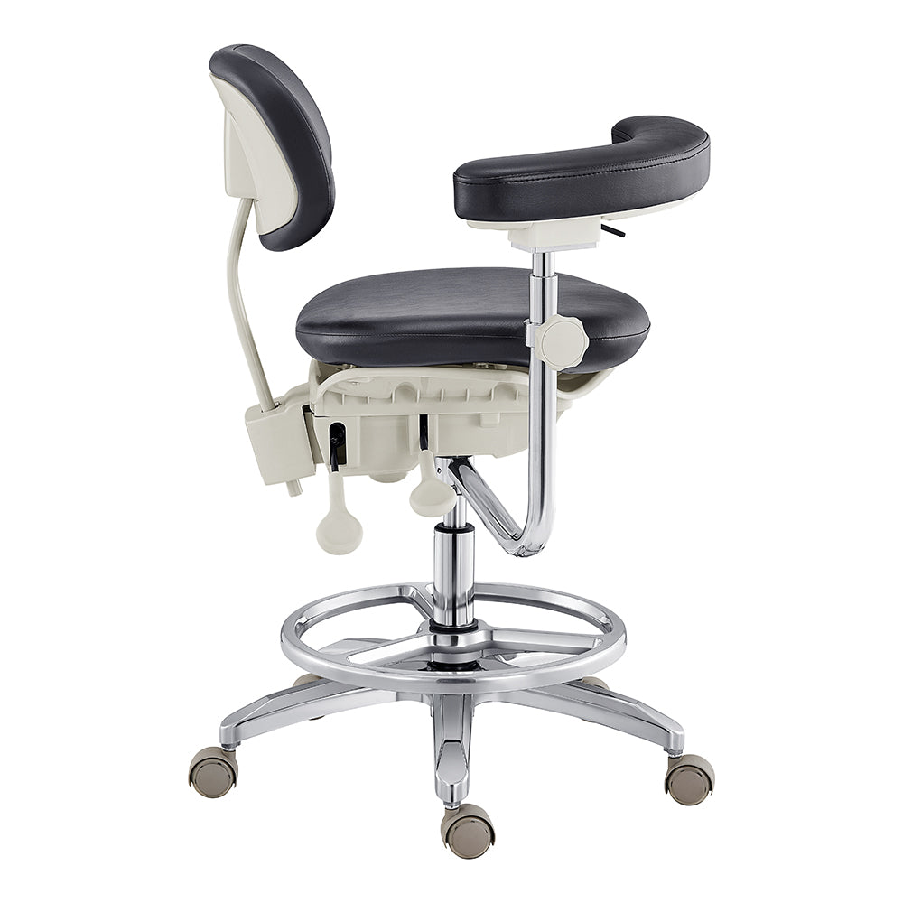 Den revolutionerende Willow-skønhedsskammel henter sine designelementer fra vores mest funktionelle skammelmodeller og inkorporerer betydelige forbedringer på alle områder. Denne moderne skammel har seks hjul fastgjort til en bred base for optimal stabilitet. Sædet har en bred vifte af fodbetjening, gasløft, højdejustering og trepunkts vægtstøtte. Pladsen under den højdensitets memory-skum giver ekstra komfort til længere siddestillinger og passer perfekt til enhver kropsform. Ud over at have højdejusteringsmuligheder er ryglænet også justerbart fremad. Skamlen suppleres af et højdejusterbart, roterende armlæn, der kan placeres i enten venstre eller højre side. Det giver lægen mulighed for at rotere på armlænet under behandlingen.