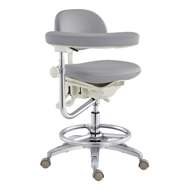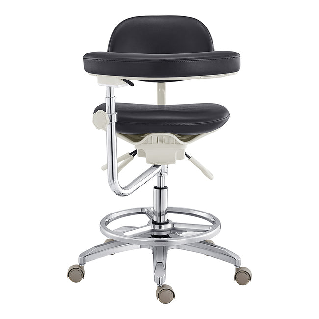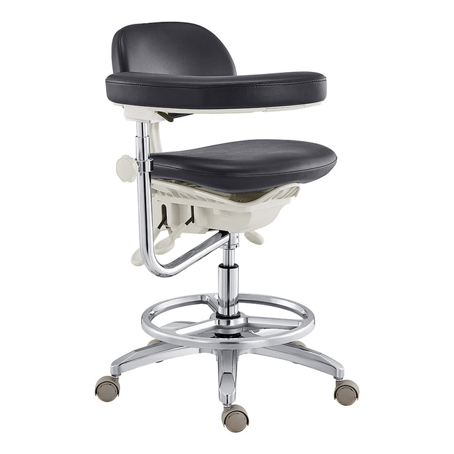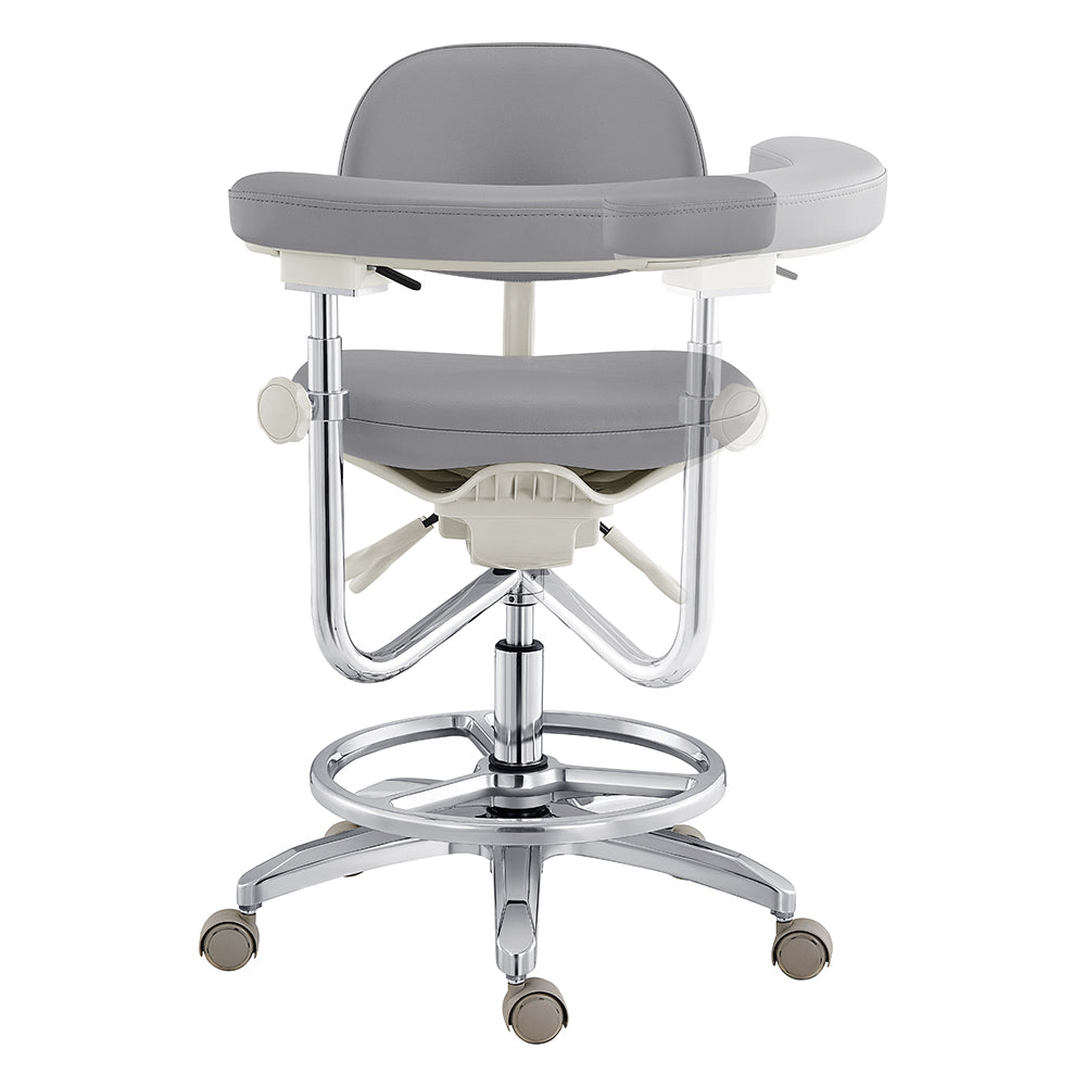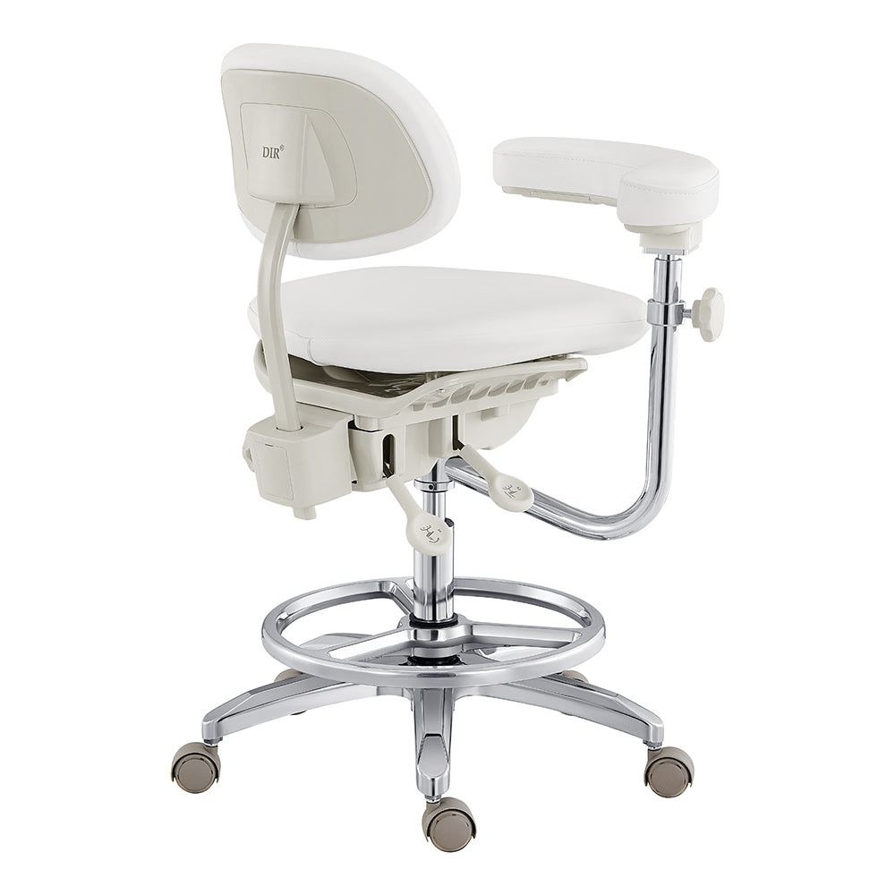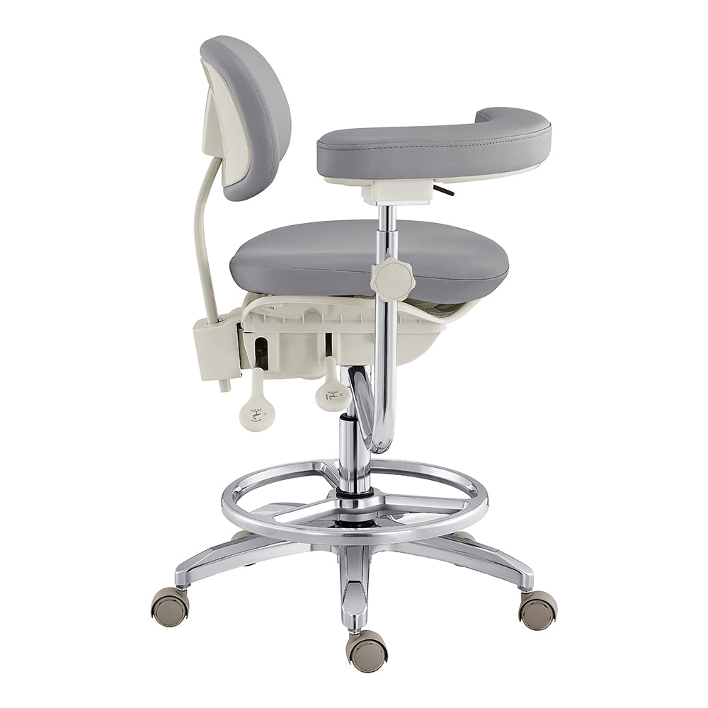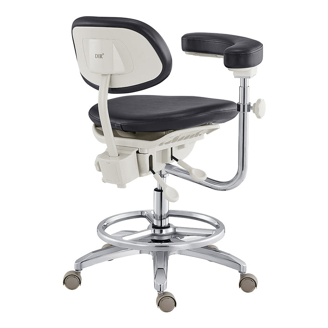 Den revolutionerende Willow-skønhedsskammel henter sine designelementer fra vores mest funktionelle skammelmodeller og inkorporerer betydelige forbedringer på alle områder. Denne moderne skammel har seks hjul fastgjort til en bred base for optimal stabilitet. Sædet har en bred vifte af fodbetjening, gasløft, højdejustering og trepunkts vægtstøtte. Pladsen under den højdensitets memory-skum giver ekstra komfort til længere siddestillinger og passer perfekt til enhver kropsform. Ud over at have højdejusteringsmuligheder er ryglænet også justerbart fremad. Skamlen suppleres af et højdejusterbart, roterende armlæn, der kan placeres i enten venstre eller højre side. Det giver lægen mulighed for at rotere på armlænet under behandlingen.