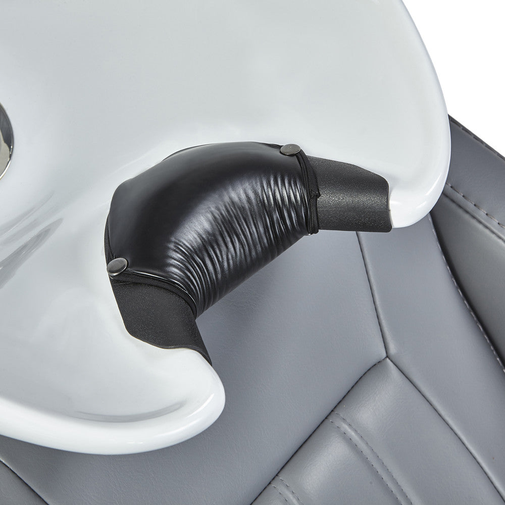 Introducing our Salon Backwash Basin Anode with adjustable leg rest. This sleek and elegant shampoo backwash unit offers the perfect combination of comfort and practicality. The high-density memory foam seat with high-grade faux leather provides ultimate comfort, while the reinforced solid steel frame ensures durability. With plumbing access for both backwash and side-wash setups, this basin is versatile and convenient. The tilting ceramic sink comes in black or white, and the set includes essential accessories such as a sprayer & faucet, sink strainer, silicon neck rest, water supply line, and drain pipes. Add-ons like a vacuum breaker and hair trap are also available. With a one-year warranty and the option to order in other colours, this basin is a must-have for any salon.