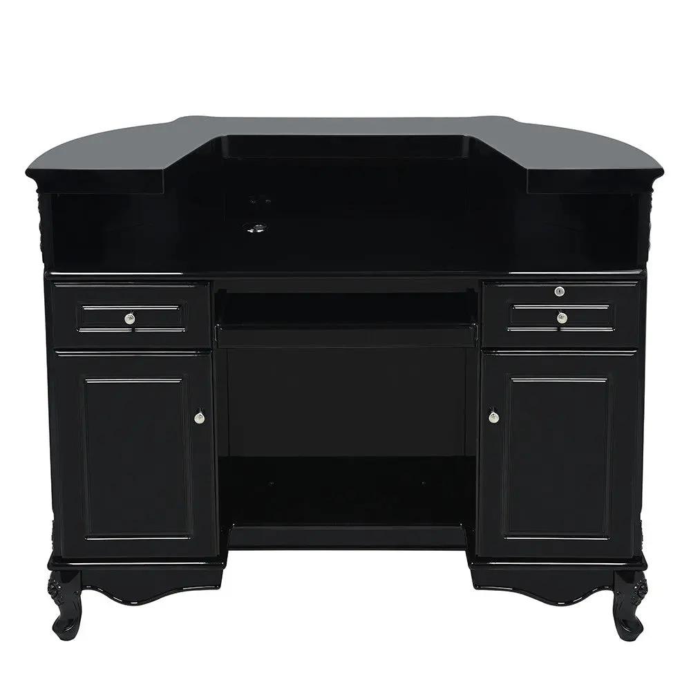DIR Reception Desk Revival er et tidløst møbel til salonen, der udstråler klasse og sofistikering. Inspireret af den victorianske æra fremviser denne receptionsdisk indviklede udskårne trædetaljer og afrundede hjørner, hvilket gør den til et must-have til enhver salon eller spa. Det hærdede, matterede glaspanel med LED-belysning skaber en betagende atmosfære, der øjeblikkeligt fanger dine kunders opmærksomhed. Dette skrivebord ser ikke kun luksuriøst ud, men det tilbyder også funktionalitet med en aflåselig skuffe, et tastaturudtræk og et stort arbejdsområde. Den slidstærke, malede overflade med sølvfarvede træudskårne detaljer tilføjer et strejf af elegance og sikrer langvarig skønhed. Designet til at imødekomme behovene i travle salonmiljøer leveres denne receptionsdisk fuldt samlet og klar til brug. En 1-års garanti giver ro i sindet, så du kan fokusere på at yde enestående service til dine kunder. Produktmålene for DIR Reception Desk Revival er 135 cm brede, 112 cm høje og 50 cm dybe, hvilket giver rigelig plads til alle dine receptionsbehov.