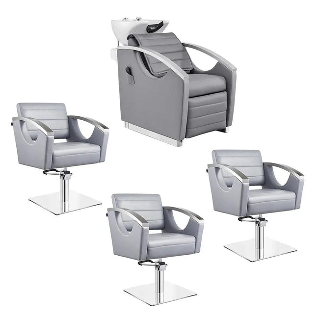 Get the ultimate salon experience with our Salon Furniture Pack 7905-1902. This pack includes the luxurious Dir Massage Backwash BELLA III with full massage function and three stylish Dir Styling Chairs Bello. Upgrade your salon today and provide your clients with the comfort and style they deserve.
