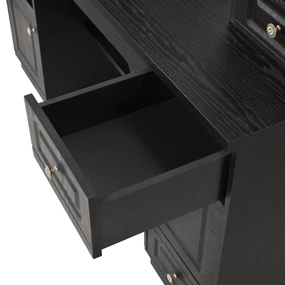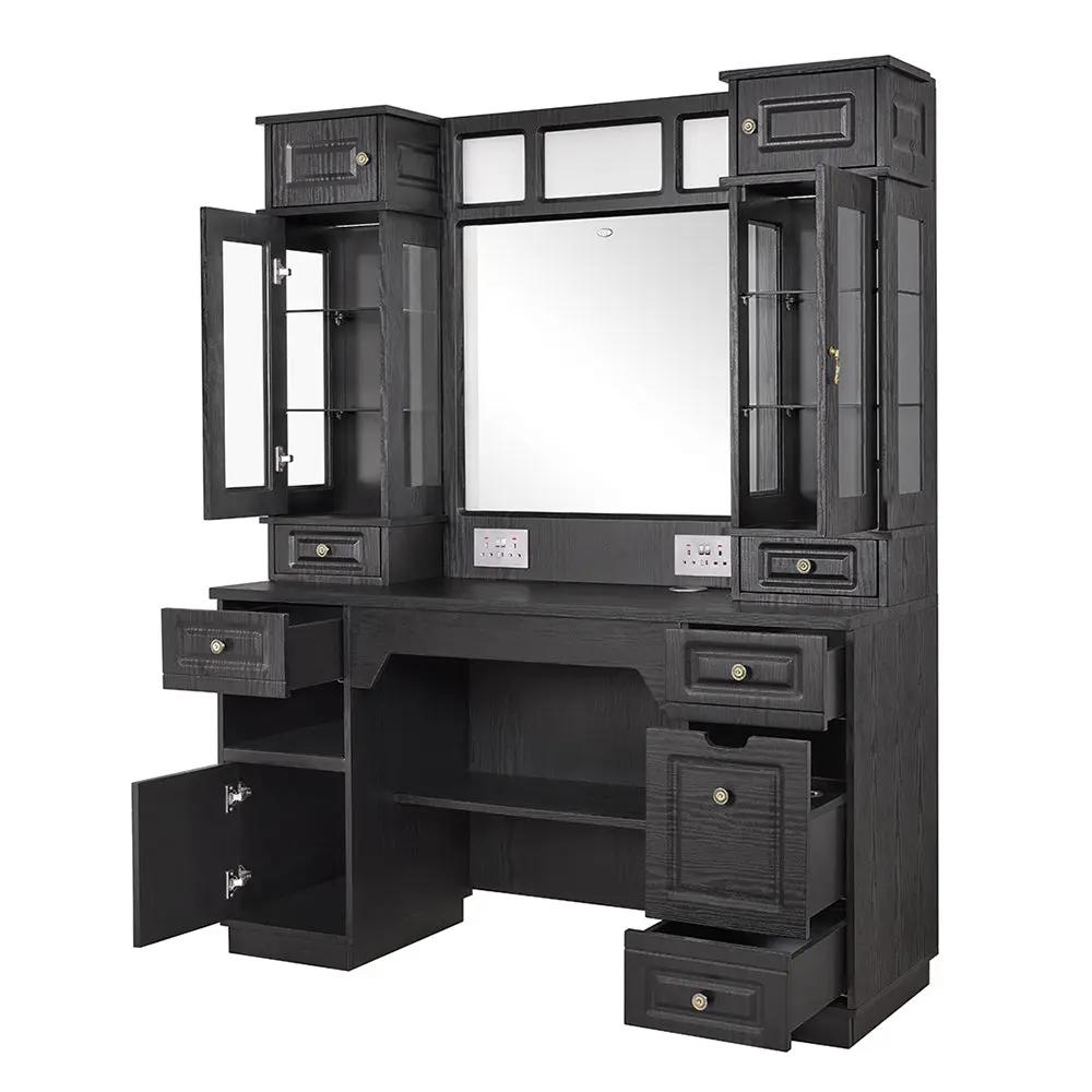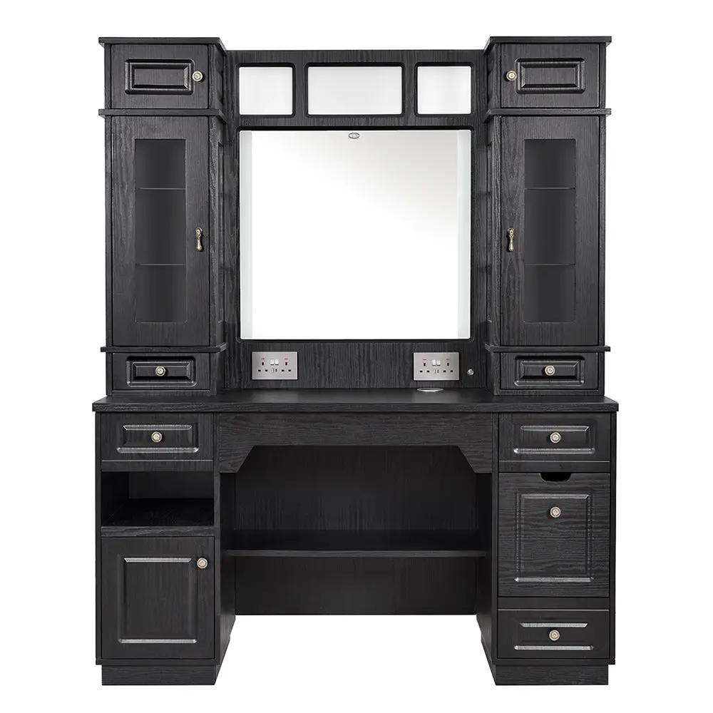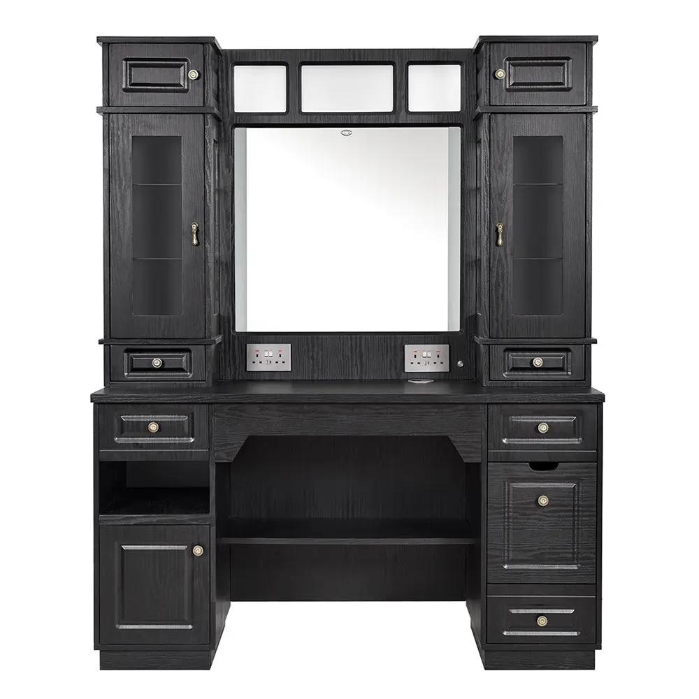 Die Barberstation Britainnica III wird mit einem freistehenden Schminktisch geliefert und ist somit ein ideales Komplettpaket. Dieses zusätzliche Element verleiht Ihrem Friseursalon einen Hauch von Eleganz und Raffinesse und schafft eine einladende und professionelle Atmosphäre für Ihre Kunden. Es verbessert nicht nur die Gesamtästhetik, sondern dient auch als praktischer Stauraum für Ihre Pflegeprodukte und persönlichen Gegenstände.