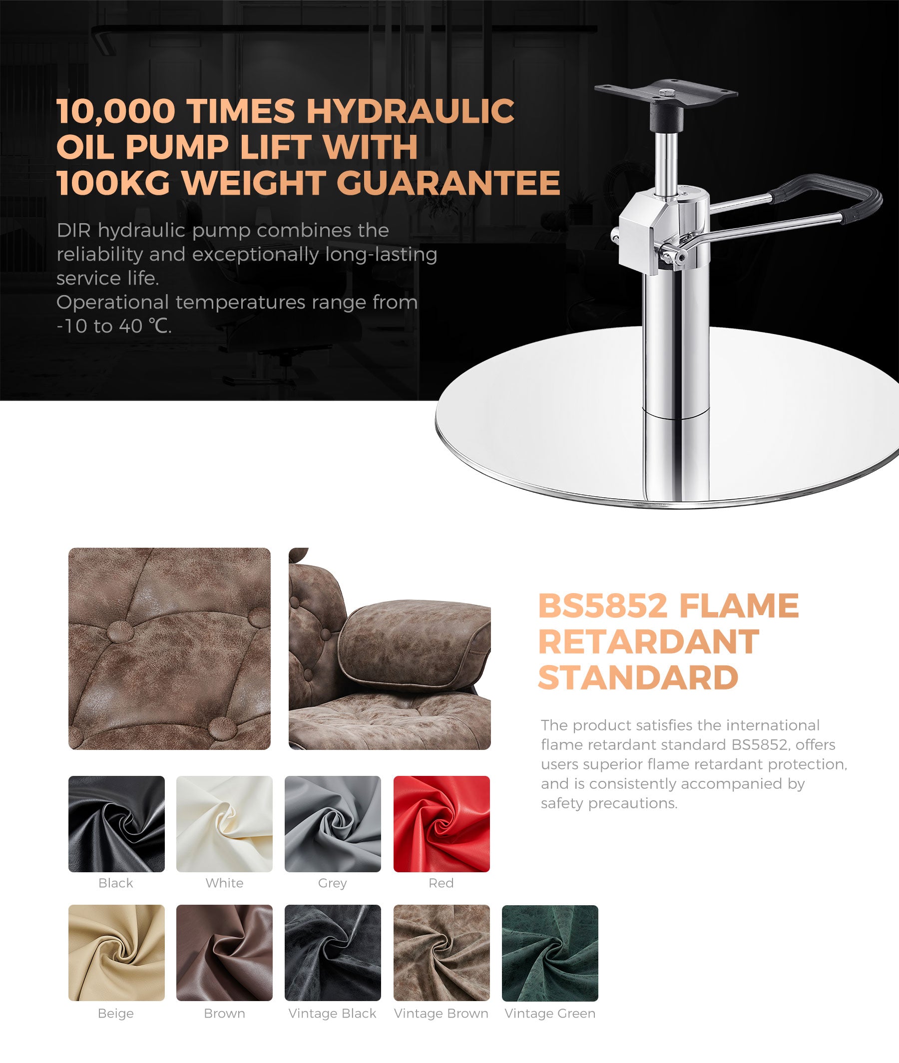 This salon chair is built to last. Made from high-quality materials, the Emaes Styling Chair can withstand the daily wear and tear of a busy beauty salon. The sturdy frame offers stability, while the hydraulic lift makes it easy to adjust the height for different clients. Because of its robust construction, you won’t have to worry about replacing your salon chairs frequently, saving you time and money.