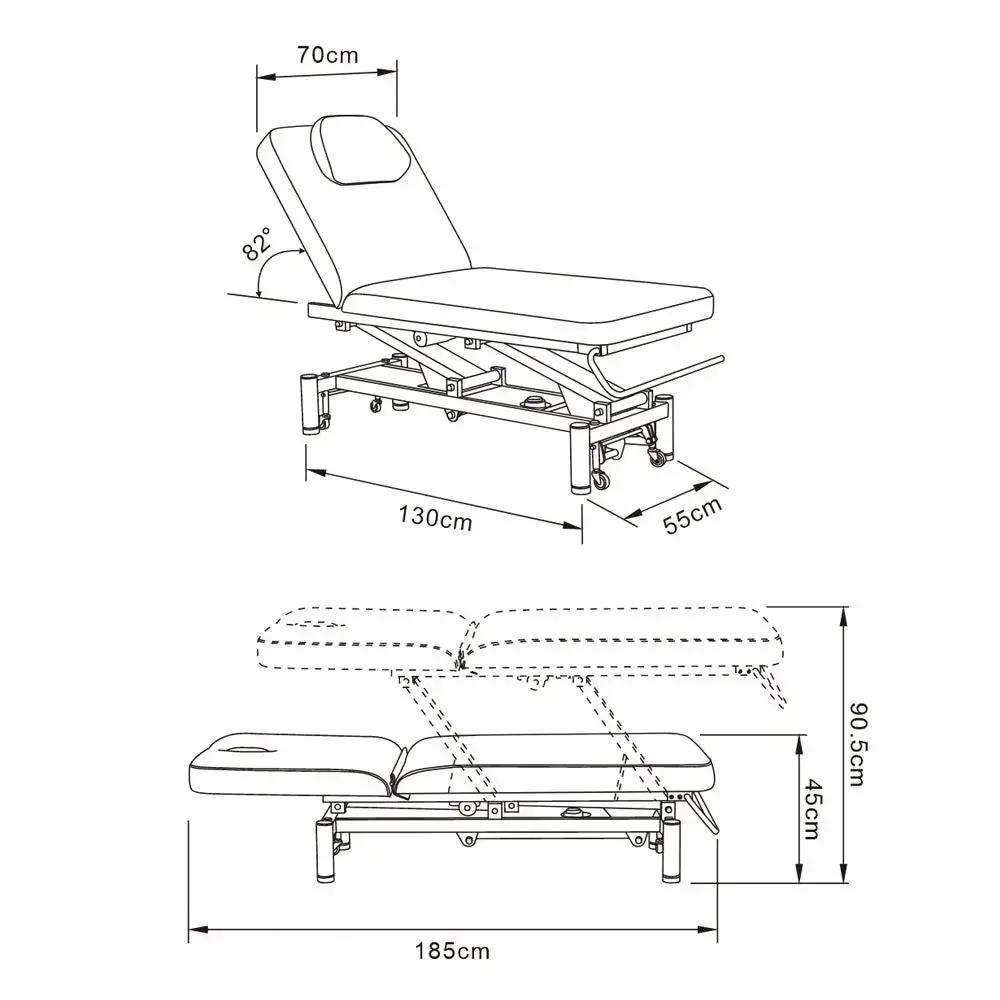 Operar esta camilla de fisioterapia es facilísimo gracias a su control remoto manual y de pie. Puede ajustar fácilmente la altura y la posición del respaldo para adaptarse a las diferentes necesidades de tratamiento. El ajuste eléctrico de altura permite elevar la cama hasta más de 84 cm, lo que la hace conveniente para profesionales de todas las alturas. El ajuste eléctrico del respaldo permite encontrar el ángulo perfecto para la comodidad del cliente durante los tratamientos. Ya sea un tratamiento facial, un masaje o cualquier otro, puede personalizar fácilmente la posición para satisfacer las necesidades de cada paciente.