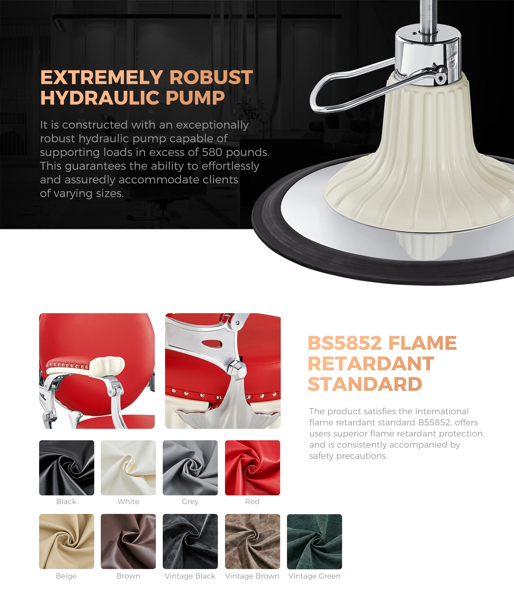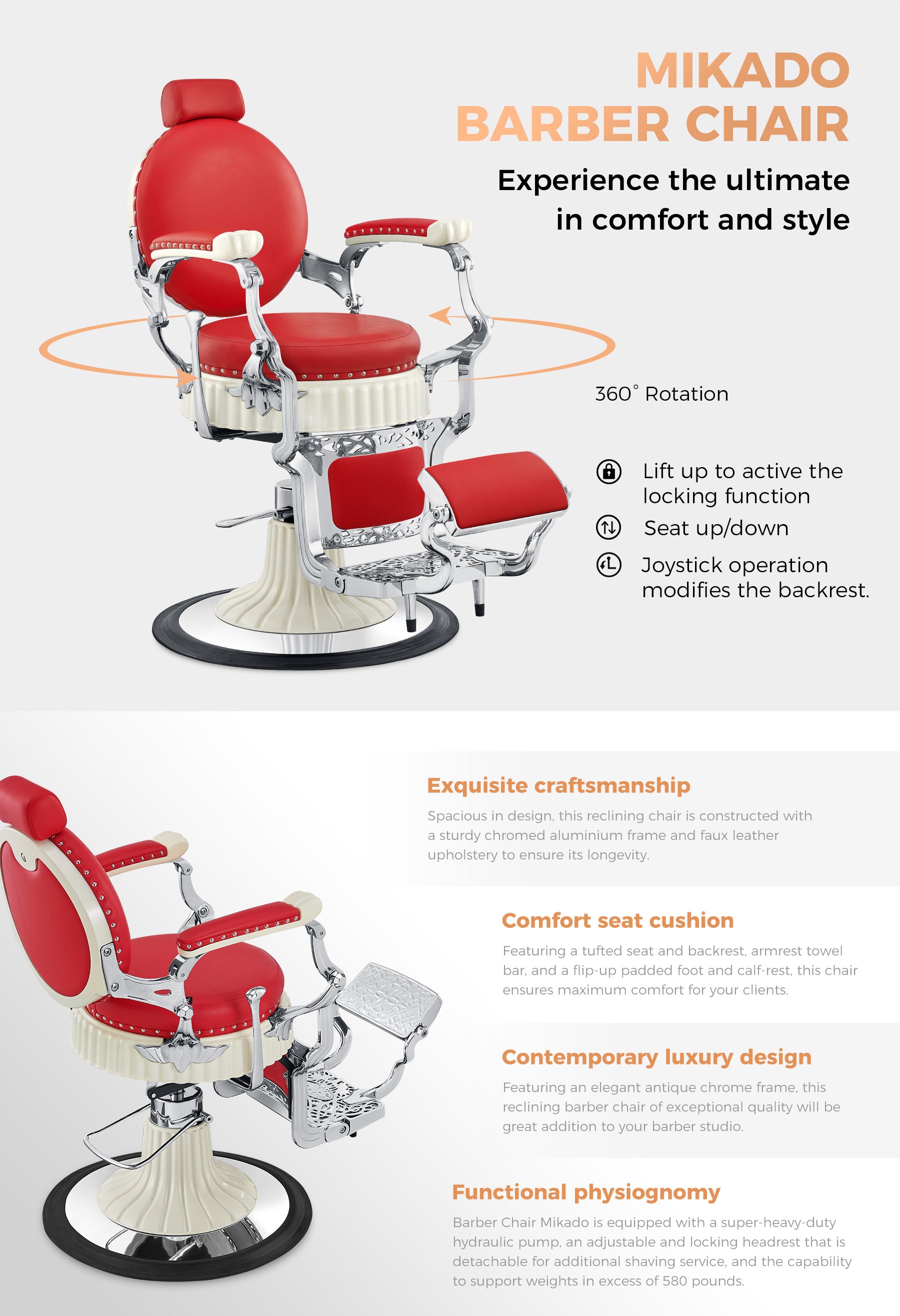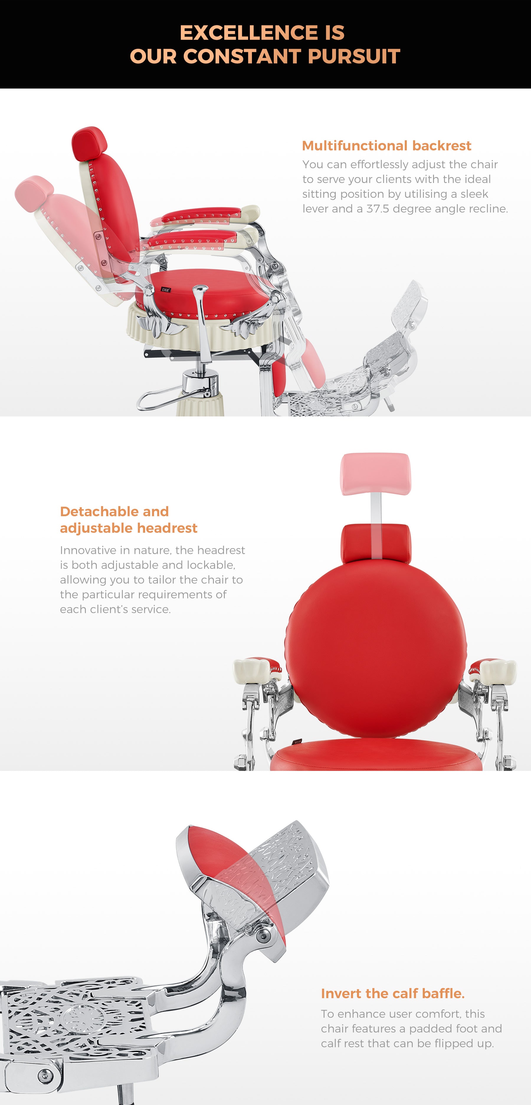Esittelyssä Mikado-parturituoli, todella poikkeuksellinen kappale, joka yhdistää nykyaikaisen eurooppalaisen muotoilun huippuosaamiseen. Tämä vintage-henkinen parturituoli on täydellinen lisä mihin tahansa parturiliikkeeseen, tarjoten sekä tyyliä että toimivuutta.