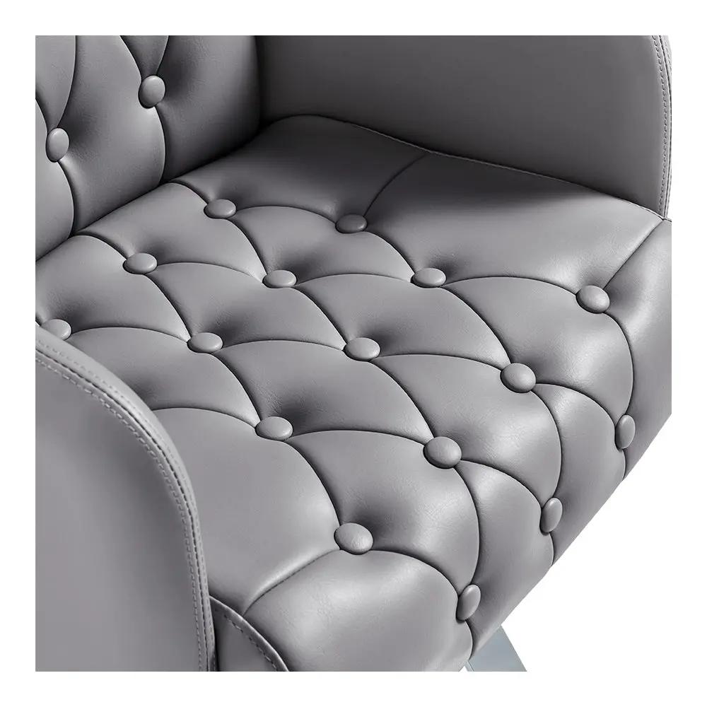 Yami-kampaamotuoli on suunniteltu sekä asiakasta että kampaajaa ajatellen. Sen tupsutettu selkänoja ja istuinpaneelit lisäävät ripauksen eleganssia ja hienostuneisuutta mihin tahansa kampaamon sisustukseen. Se ei ainoastaan tarjoa ylellistä estetiikkaa, vaan myös erinomaista mukavuutta paksujen selkä- ja istuintyynyjensä ansiosta. Asiakkaasi tuntevat olonsa kuninkaallisiksi rentoutuessaan tässä pehmeässä tuolissa.