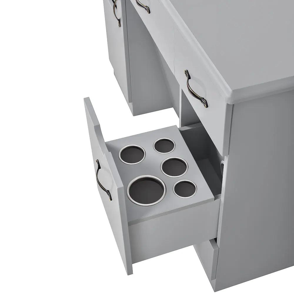 Oltre all'ampio spazio sul bancone, la Barber Station Champion II è dotata anche di un comodo cassetto estraibile. Questo cassetto è perfetto per riporre piccoli strumenti o accessori, mantenendoli organizzati e facilmente accessibili. Niente più perdite di tempo alla ricerca di quel pettine o spazzola di cui hai bisogno: con questa postazione, ogni cosa avrà il suo posto.