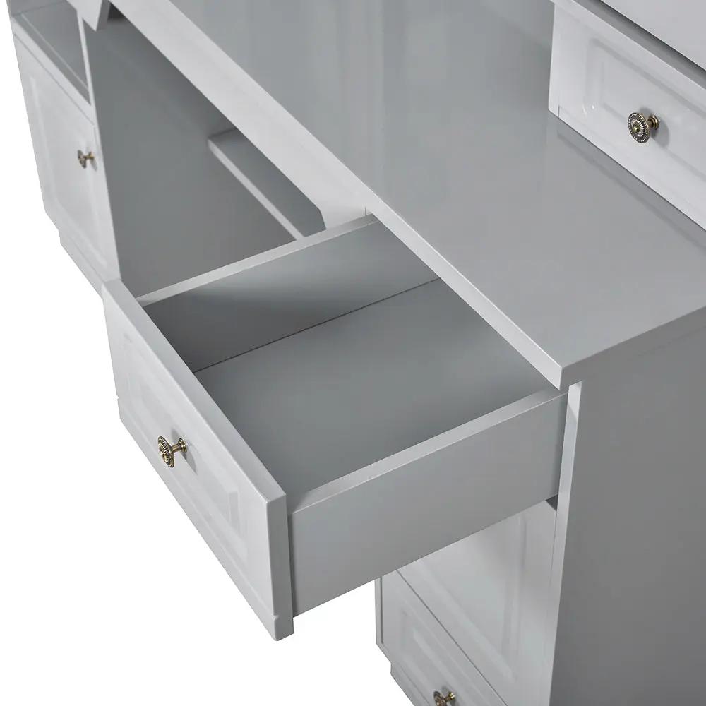 Per completare il pacchetto, la postazione da barbiere Britainnica III è dotata di una postazione trucco indipendente. Questa caratteristica aggiuntiva aggiunge un tocco di eleganza e raffinatezza al tuo salone da barbiere, creando un'atmosfera accogliente e professionale per i tuoi clienti. Non solo migliora l'aspetto estetico generale, ma funge anche da comodo spazio di servizio per riporre i tuoi prodotti per la cura della persona e gli effetti personali.