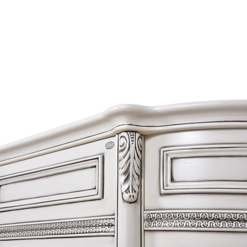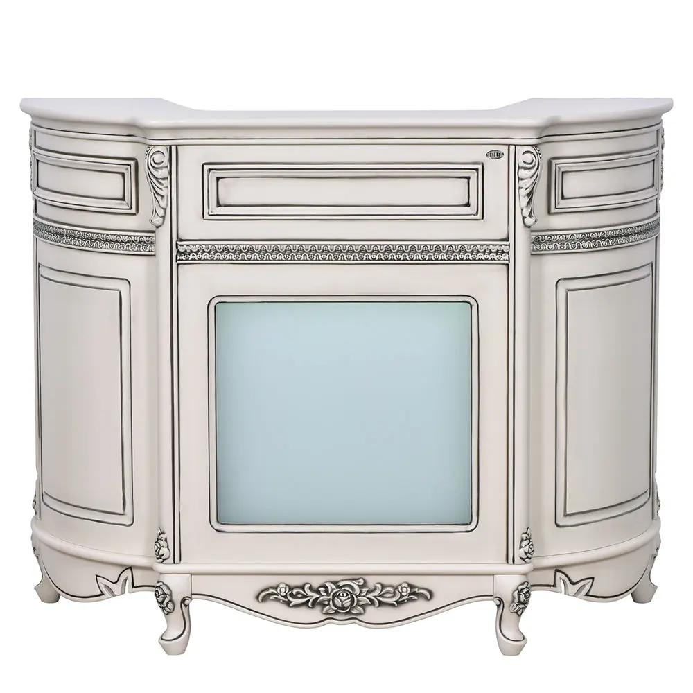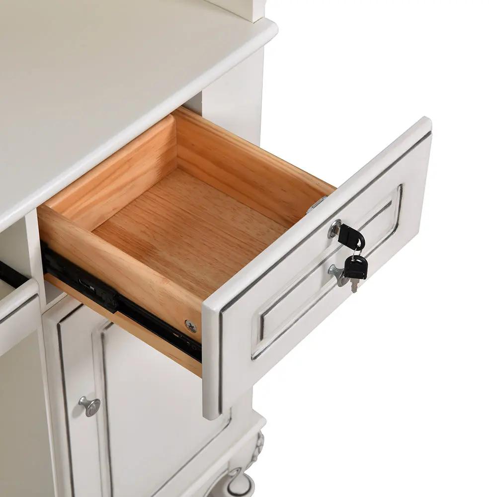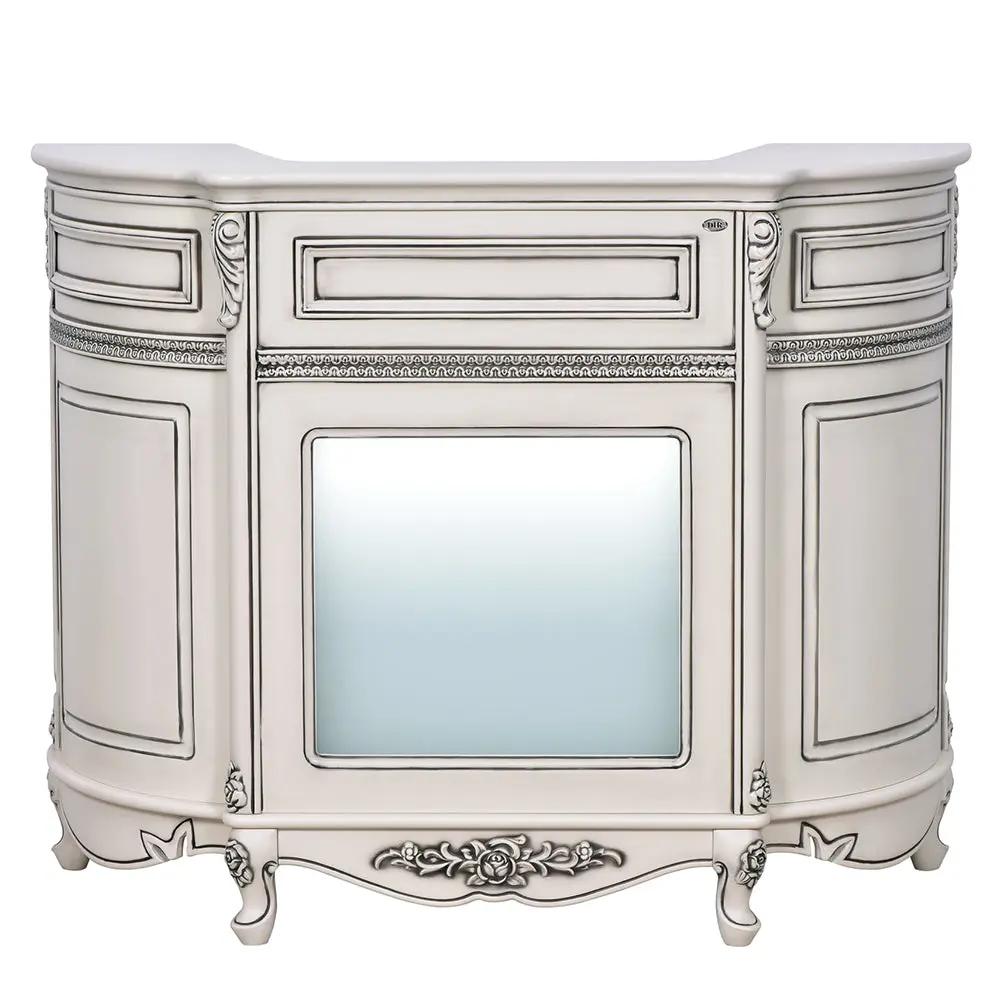 Reception Desk Vintage Revival II er ikke bare stilig, men også slitesterk. Den har en slitesterk, malt overflate med sølvfargede treutskårne detaljer, noe som gir et snev av raffinement til det generelle designet. Dette skrivebordet er bygget for å vare, noe som sikrer at det tåler den daglige slitasjen i en travel salong eller spa-miljø.