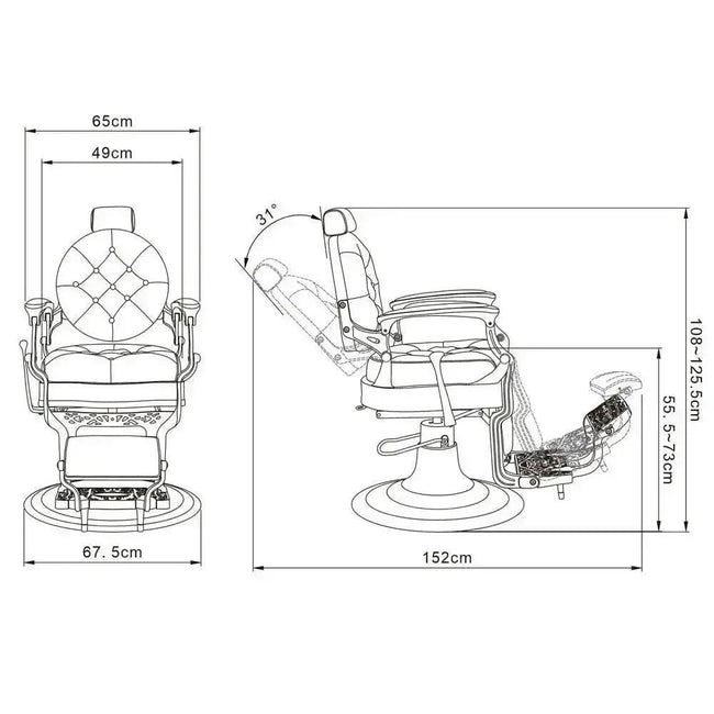 Men det handler ikke bare om stil og komfort – DIR Barber Chair Vanquish er bygget for å vare. Den superkraftige hydrauliske pumpen og den detaljerte basen tåler vekter over 340 kg, noe som gjør den egnet for kunder i alle størrelser. 45-graders vinkel, kontrollert av en elegant spak, lar kundene dine finne den perfekte avslapningsstillingen under salongbesøket.
