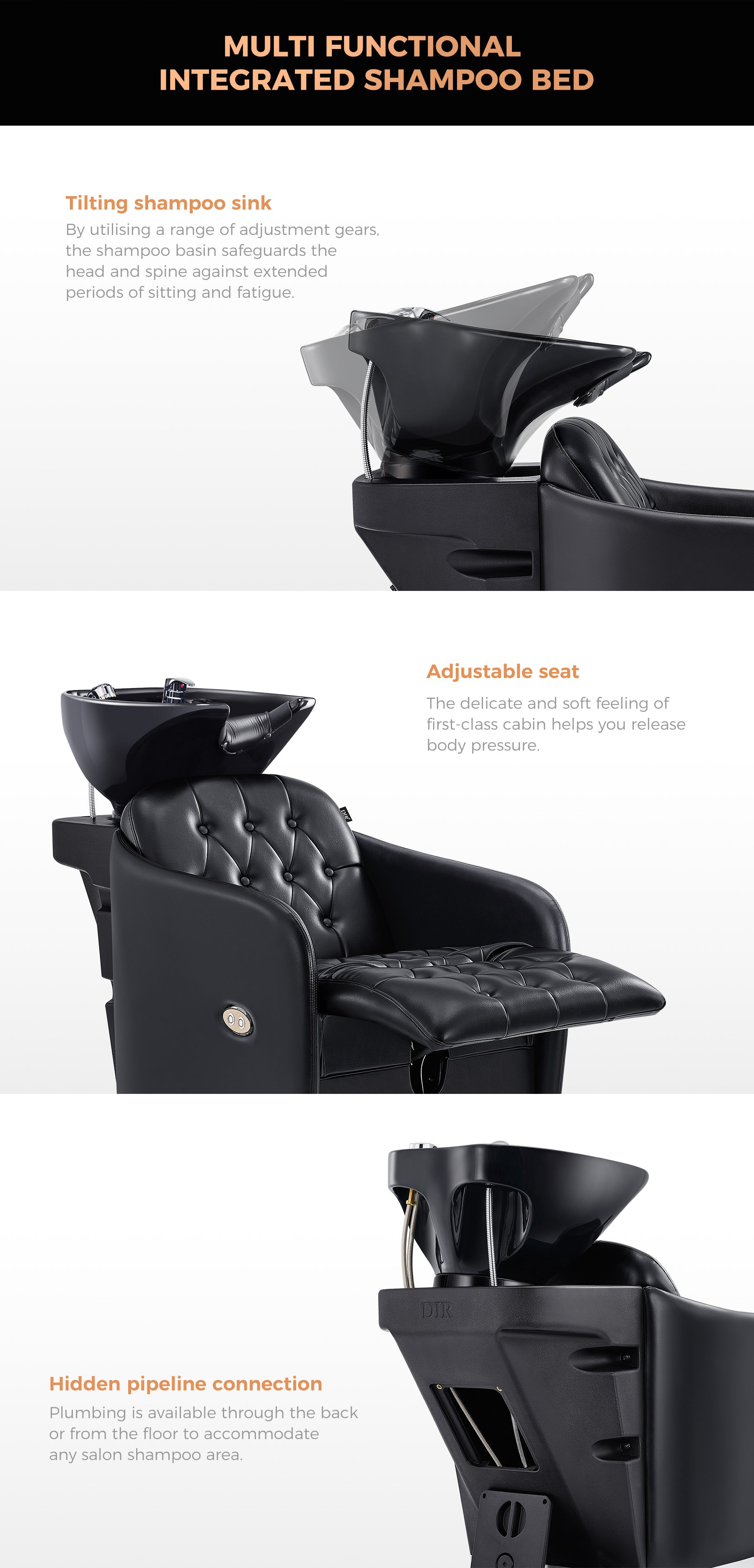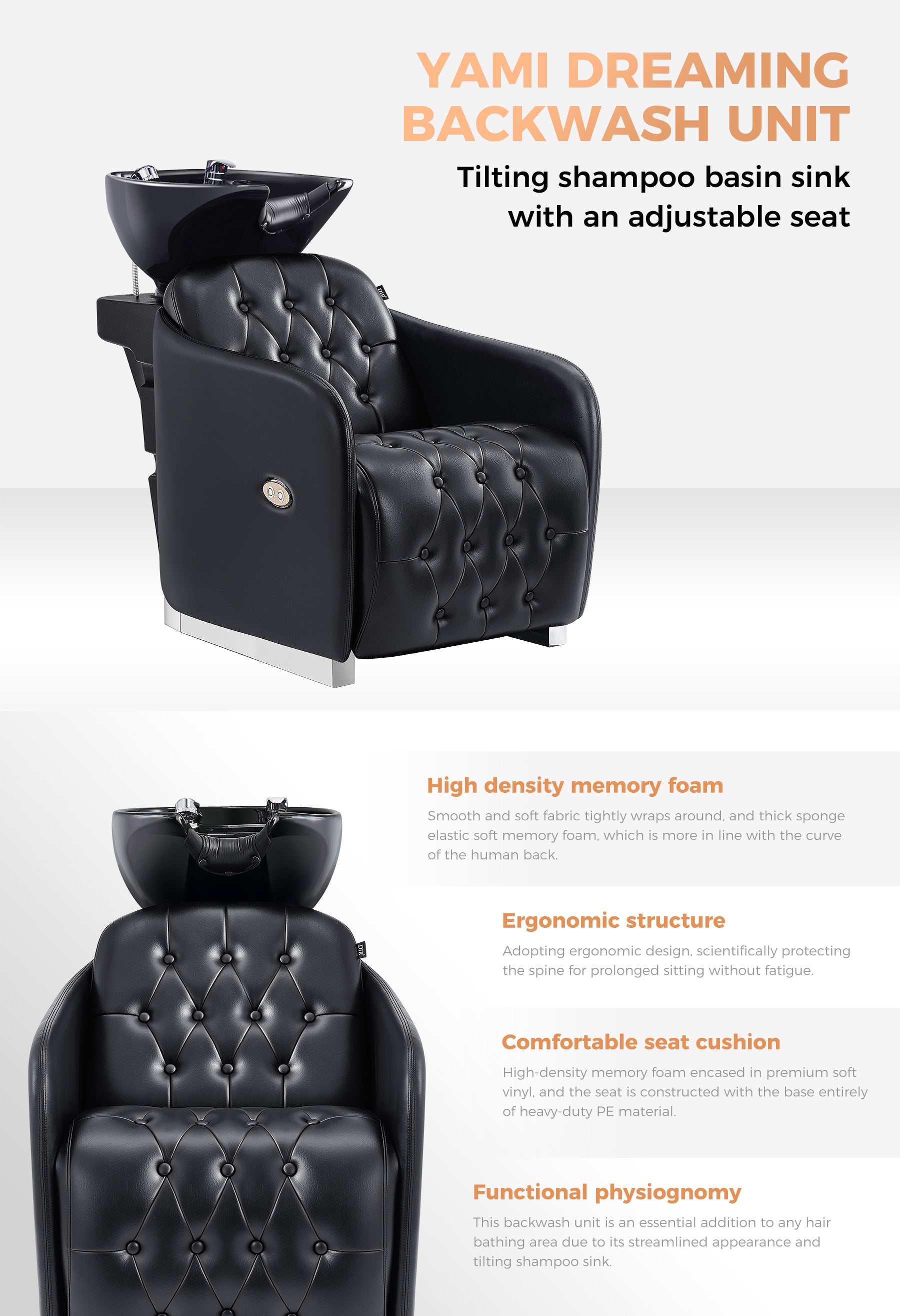 Pikowane siedzisko i oparcie umywalki Yami Dreaming Backwash Basin dodadzą elegancji i wyrafinowania każdemu salonowi. Pianka memory o wysokiej gęstości nie tylko zapewnia wyjątkowy komfort, ale także gwarantuje, że klienci będą mieli odpowiednie podparcie podczas mycia włosów. Koniec z niewygodnymi pozycjami i niewygodnymi kątami – umywalka Yami Dreaming Backwash Basin została zaprojektowana tak, aby klienci czuli się jak w luksusowym spa.