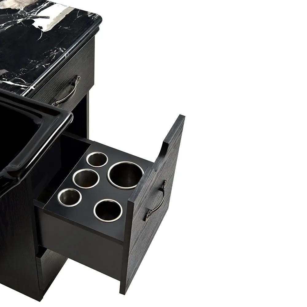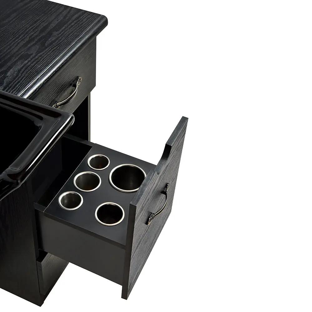 But that's not all – this barber station is not just a front wash, but also a complete styling unit. With its large counter space and pull-out drawer, you have ample room to store all your styling tools and products. No more cluttered workstations – the Barber Station With Sink Taylor helps you stay organised and efficient.