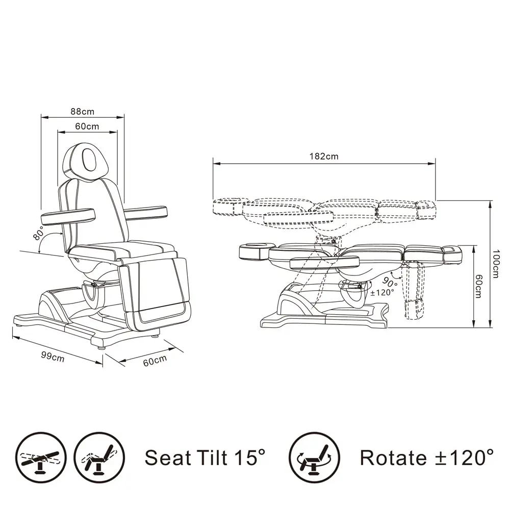 In addition, the Pavo electric beauty bed offers a manually adjusted 180-degree rotating seat, providing you with the flexibility to access and treat your clients from multiple angles. This feature is especially useful for procedures that require a different positioning or reach.