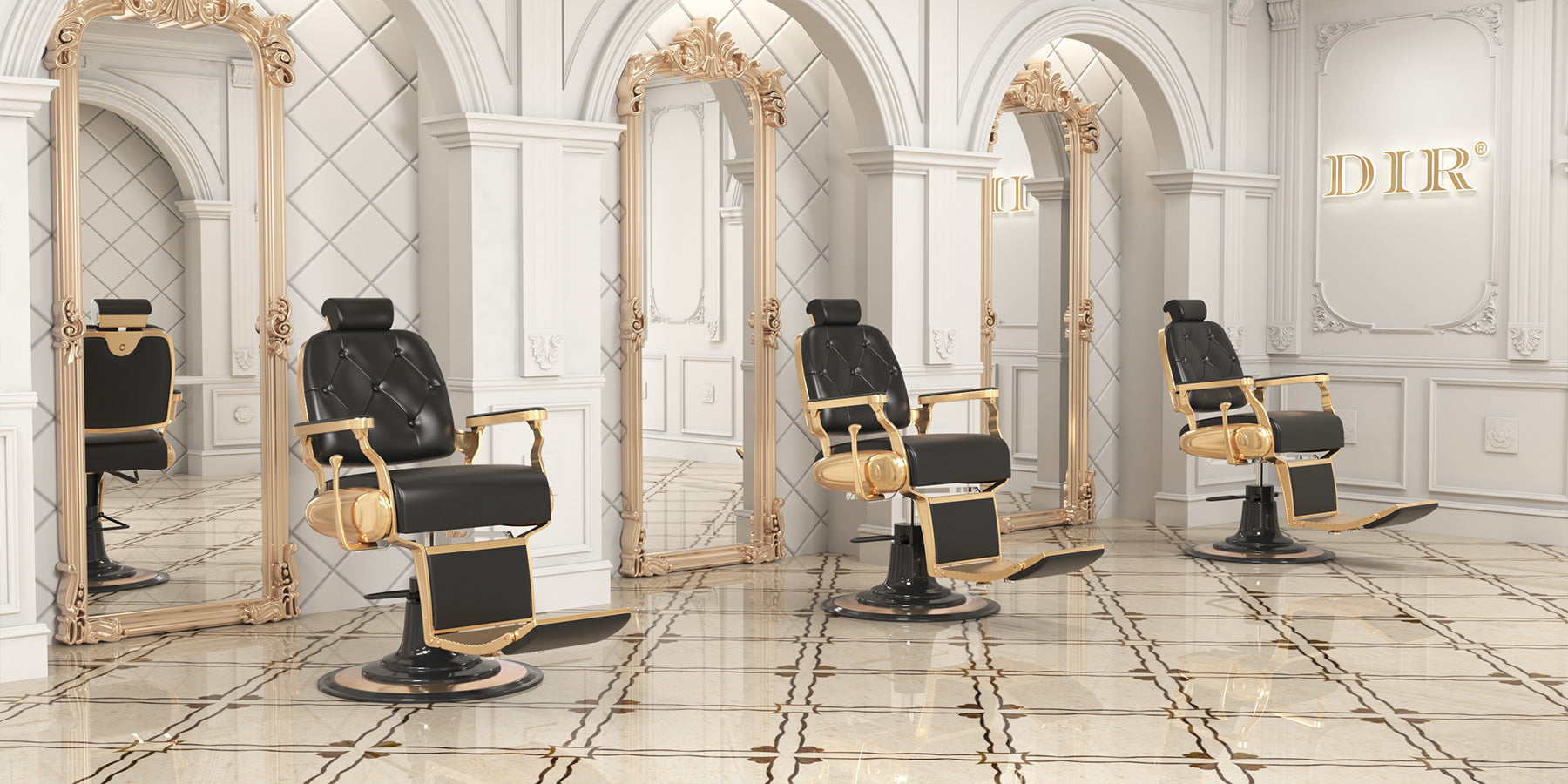 Make a statement in the barbershop with the Cavalier vintage barber chair. Classy and cosmopolitan, the golden frame reclining barber chair with a headrest is fitted with DIR’s signature plush cushioning. The adjustable back, foot rests, and heavy duty hydraulic base make the Cavalier an exceptional adjustable barber chair. Shop our barber chairs for sale today!