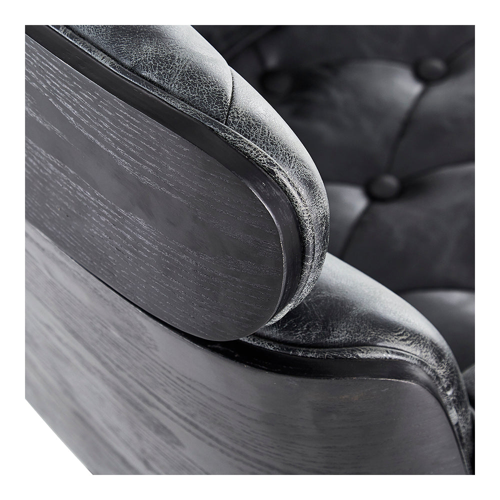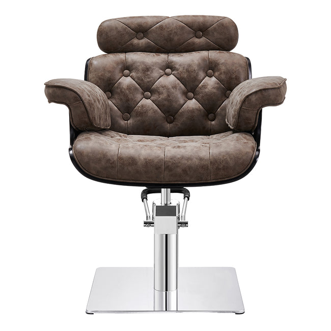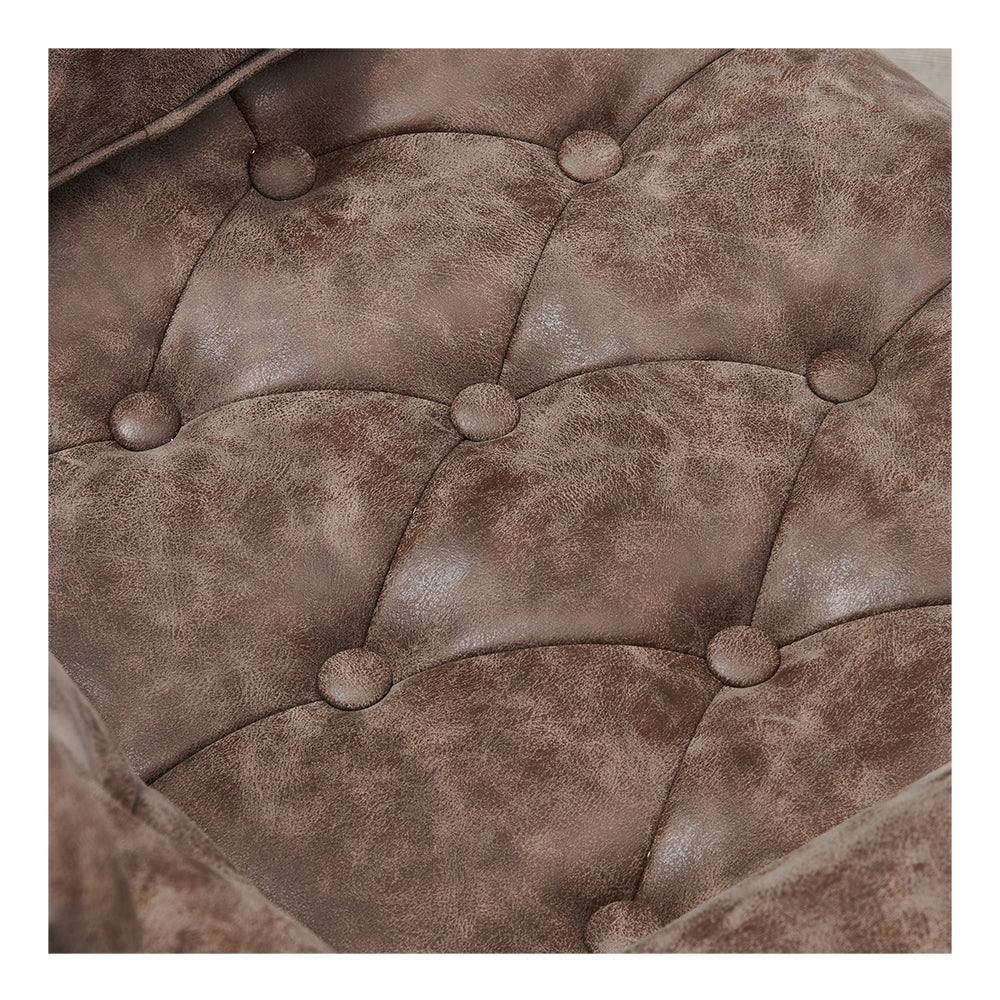 Fabricada com perfeição por artesãos altamente qualificados, esta cadeira apresenta um revestimento em couro sintético antigo de alta qualidade com acabamento desgastado. Isso confere a ela um visual único e vintage que certamente impressionará seus clientes. O assento e o encosto capitonê, juntamente com os braços acolchoados, proporcionam o máximo conforto para seus clientes durante a experiência no salão.