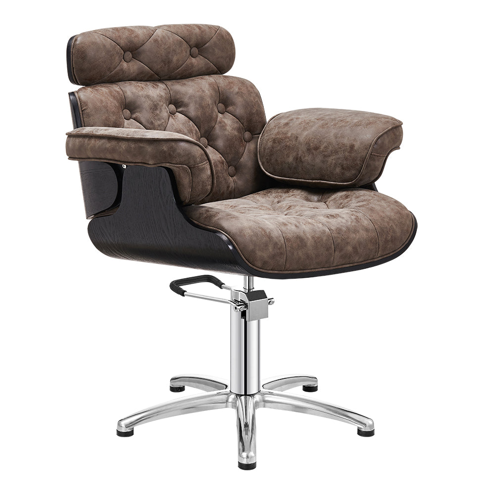 A cadeira Eames Lounge Salon é um clássico do design que está em produção contínua desde 1956. É conhecida por seu design icônico, que busca transmitir a impressão de uma luva de beisebol bem usada. Este design atemporal já foi exibido em museus famosos como o Museu de Arte Moderna (MoMA) e até apareceu em programas de TV populares. Agora, a Dir adaptou esse design icônico para um ambiente de salão de beleza, resultando na criação da cadeira de cabeleireiro Eames para salão de beleza.
