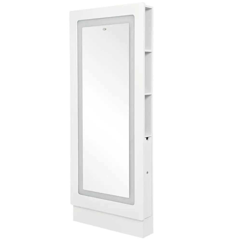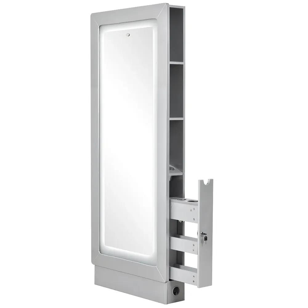 O espelho com iluminação LED é outro destaque desta estação. Além de proporcionar a iluminação perfeita para seus clientes, ele também adiciona um toque de luxo ao seu salão. As luzes de LED criam um brilho suave e favorecedor, permitindo que seus clientes vejam cada detalhe enquanto fazem o cabelo ou a maquiagem. Com este espelho, você pode criar uma experiência de salão verdadeiramente imersiva e sofisticada.