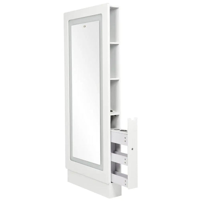 Procura uma solução elegante e funcional para o seu salão de beleza? A Estação de Trabalho de LED Monarch é a escolha ideal. Esta unidade de parede combina um design sofisticado com funcionalidades práticas, criando a estação de trabalho perfeita para qualquer salão.