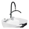 Em termos de funcionalidade, esta unidade de lavagem traseira oferece opções de lavagem traseira e lateral, permitindo que você escolha a configuração hidráulica mais adequada para o seu salão. A cuba de cerâmica basculante está disponível em preto ou branco, oferecendo a opção de escolher a cor que melhor se adapta à estética do seu salão. A cuba é equipada com um pulverizador e torneira, além de um ralo para evitar entupimentos. Um apoio de pescoço em silicone também está incluído para maior conforto durante a lavagem dos cabelos.