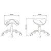 The Beauty Salon Pedicure Nero is a stylish and comfortable salon stool designed for beauty technicians and salon stylists. Its saddle-like seating design provides maximum seating comfort and easy manoeuvrability. Made with high-grade faux leather and high-density memory foam, it offers durability and comfort. With a single lever pneumatic seat height adjustment and a wide 5-star base with premium casters, this stool makes it easy to move around. It has a weight capacity of 135kg and comes with a 1-year warranty.