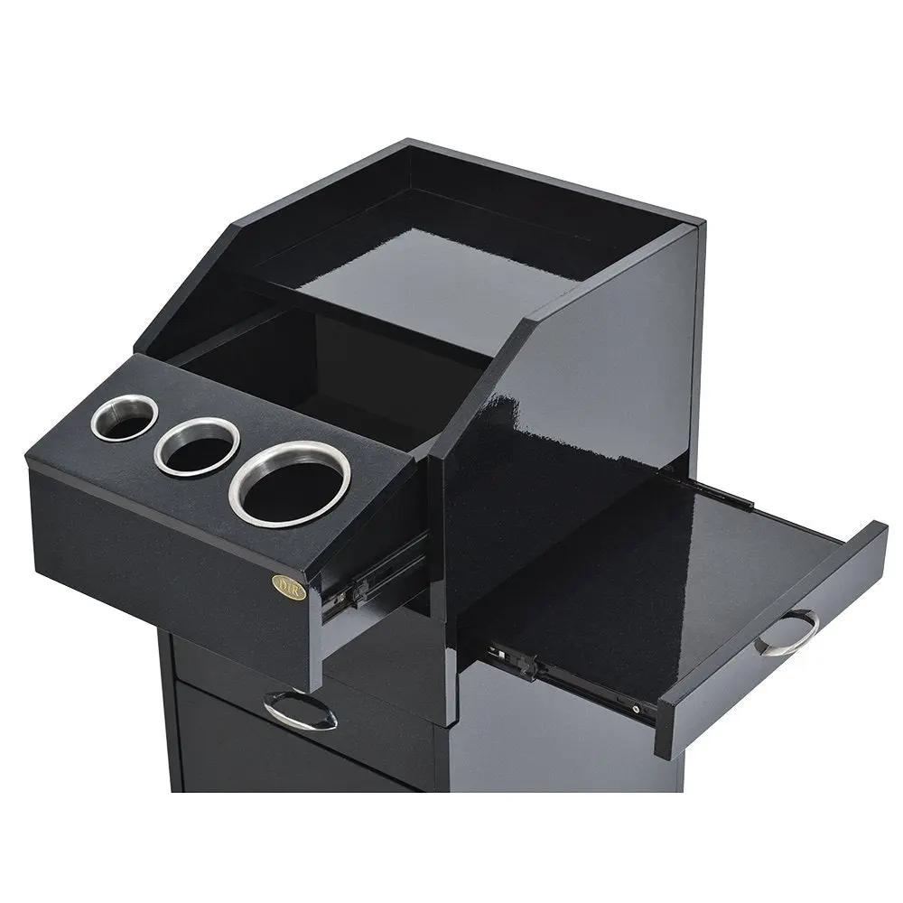 Bu servis arabası, salon aletlerinizi ve malzemelerinizi düzenli tutmanıza yardımcı olacak birçok saklama seçeneği de sunar. Saç maşası ve düzleştirici gibi sıcak aletlerinizi tutmak için mükemmel olan üç adet ısıya dayanıklı metal alet halkasına sahiptir. Bu halkalar, aletleriniz soğurken onları güvenli ve kullanışlı bir şekilde saklamanızı sağlayarak kazaları veya hasarları önler.